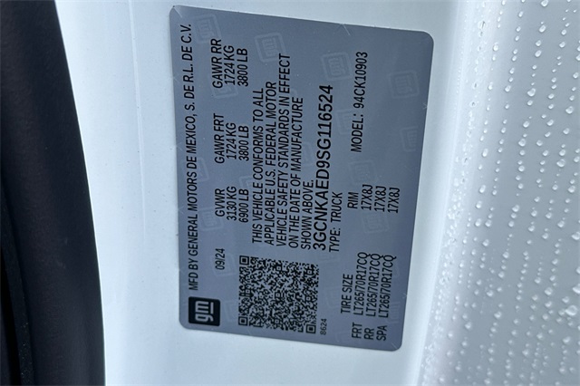 - VIN : 3GCNKAED9SG116524