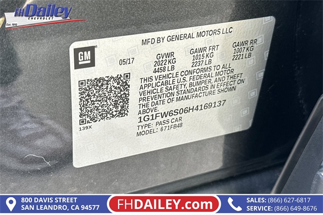 - VIN : 1G1FW6S06H4169137