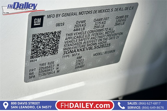 Experience versatility, comfort, and advanced technology with the 2020 Chevrolet Equinox LT, now available at FH Dailey Chevrolet in San Leandro, CA. This compact SUV is designed to meet the needs of Bay Area drivers, offering a smooth ride, spacious interior, and smart safety features for everyday confidence.