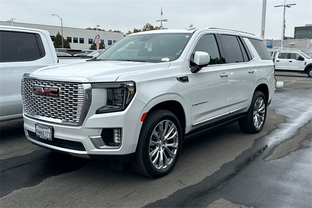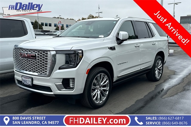 This vehicle is equipped with: License Plate Front Mounting Package, Max Trailering Package, Preferred Equipment Group 5SA (12-Way Power Seat Adjusters, 15" Diagonal Multi-Color Head-Up Display, 2 Presets For Outside Rearview Mirrors, 3rd Row 60/40 Power-Folding Split-Bench Seat, Adaptive Cruise Control, Bose 14-Speaker Surround w/CenterPoint, Bright Front & Rear Door Sill Plates, Chrome Door Handles w/Body-Color Strip, Dual Exhaust System, Enhanced Automatic Emergency Braking, Floor Console, Galvano Bodyside Moldings, Hands-Free Power Programmable Rear Liftgate, HD Surround Vision, Heated 2nd Row Outboard Position Seats, Heated Driver & Front Passenger Seats, Heated Steering Wheel, Hill Descent Control, Inside Rear-View Auto-Dimming Mirror, Outside Heated Power-Adjustable Mirrors, Perforated Heated & Ventilated Dr & Frt Pass Seats, Power Release 2nd Row Bucket Seats, Power Tilt & Telescopic Steering Column, Rear Pedestrian Alert, Safety Alert Seat, Universal Home Remote, and Wireless Charging), 4WD, 14 Speakers, 3.23 Rear Axle Ratio, 3rd row seats: split-bench, 4-Wheel Disc Brakes, ABS brakes, Adaptive suspension, Air Conditioning, Alloy wheels, AM/FM radio: SiriusXM with 360L, AM/FM Stereo, Apple CarPlay/Android Auto, Auto High-beam Headlights, Auto-dimming door mirrors, Auto-dimming Rear-View mirror, Auto-leveling suspension, Automatic Emergency Braking, Automatic temperature control, Bodyside moldings, Brake assist, Bumpers: body-color, Compass, Delay-off headlights, Driver door bin, Driver vanity mirror, Dual front impact airbags, Dual front side impact airbags, Dual-Pane Panoramic Power Sunroof, Electronic Stability Control, Emergency communication system: OnStar and GMC connected services capable, Extra Capacity Cooling System, Following Distance Indicator, Forward Collision Alert, Four wheel independent suspension, Front & Rear Park Assist, Front anti-roll bar, Front Bucket Seats, Front Center Armrest, Front dual zone A/C, Front fog lights, Front Pedestrian Braking, Front reading lights, Fully automatic headlights, Garage door transmitter, Heads-Up Display, Heated door mirrors, Heated front seats, Heated rear seats, Heated steering wheel, Hitch View, Illuminated entry, Integrated Trailer Brake Controller, IntelliBeam Automatic High Beam On/Off, Lane Change Alert w/Side Blind Zone Alert, Lane Keep Assist w/Lane Departure Warning, Low tire pressure warning, Magnetic Ride Control Suspension, Memory seat, Navigation System, Occupant sensing airbag, Outside temperature display, Overhead airbag, Overhead console, Panic alarm, Passenger door bin, Passenger vanity mirror, Perforated Leather Seating Surfaces, Power door mirrors, Power driver seat, Power Liftgate, Power passenger seat, Power steering, Power windows, Power-Retractable Assist Steps, Rain sensing wipers, Rear air conditioning, Rear anti-roll bar, Rear Cross Traffic Alert, Rear reading lights, Rear Seat Media System, Rear window defroster, Rear window wiper, Remote keyless entry, Roof rack: rails only, Security system, SiriusXM w/360L, Smart Trailer Integration Indicator, Speed control, Speed-sensing steering, Split folding rear seat, Spoiler, Steering wheel memory, Steering wheel mounted audio controls, Tachometer, Telescoping steering wheel, Tilt steering wheel, Traction control, Trailer Side Blind Zone Alert, Trip computer, Turn signal indicator mirrors, Variably intermittent wipers, Ventilated front seats, Voltmeter, Wheel Locks (Set of 4) (LPO), Wheels: 20" x 9" 6-Spoke Polished Aluminum, and Wheels: 22" x 9" Bright Machined Aluminum Family Owned and Operated for Since 1910 FH Dailey Chevrolet has been serving San Leandro and the San Francisco, Oakland Bay Area since 1910. We work hard so you don't have too.